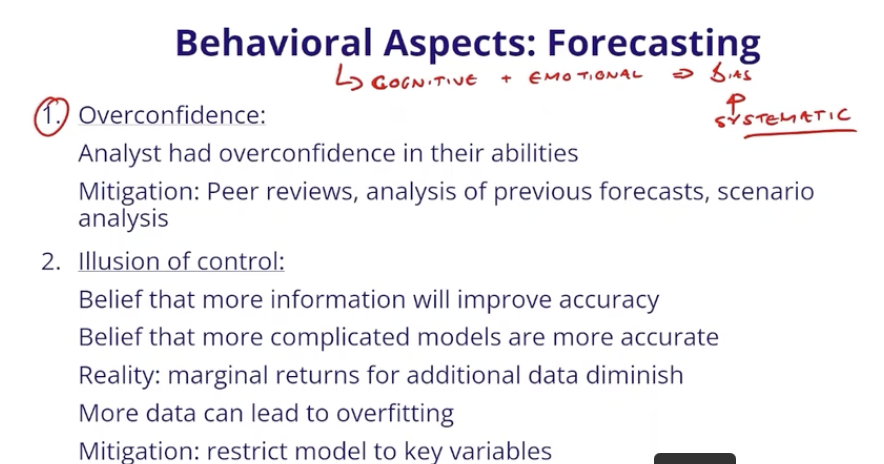 38.1 Behavioural aspects: describe how overconfidence, and illusion of control can impact an analyst’s forecast: