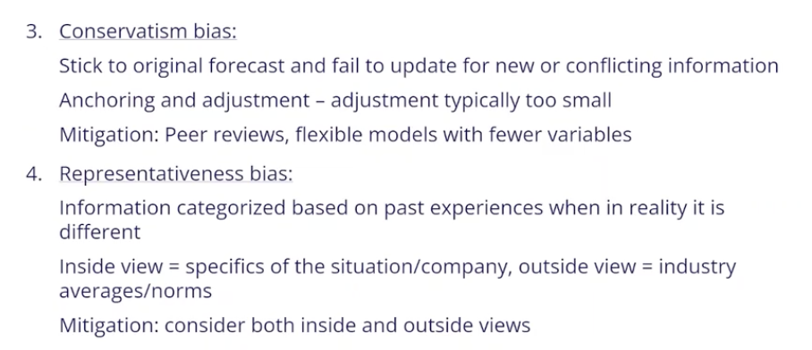38.1 Behavioural aspects: describe how conservatism bias, and representativeness bias can impact an analyst’s forecast: