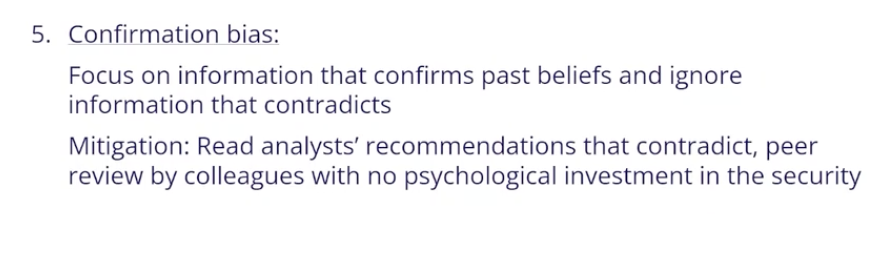 38.1 Behavioural aspects: describe how confirmation bias can impact an analyst’s forecast: