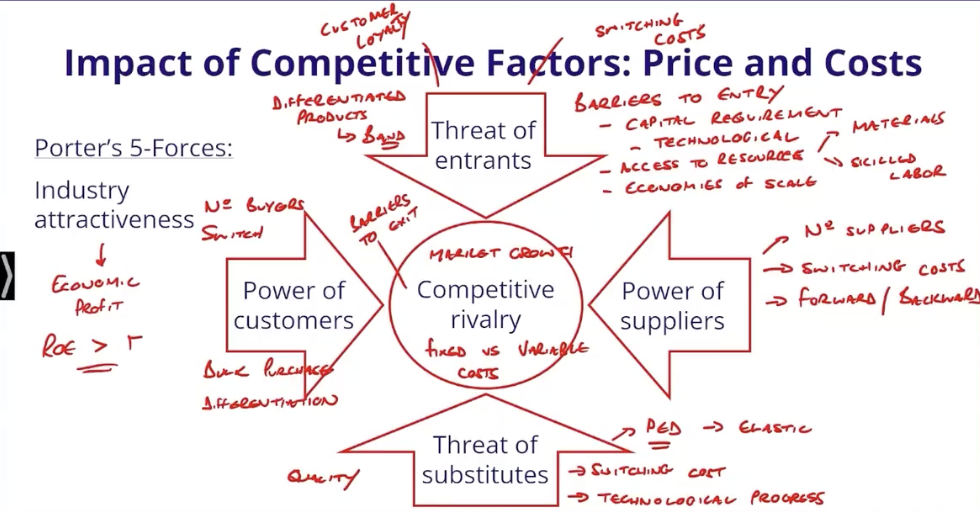 - if market is stagnant, people need to steal market share to have economic profit