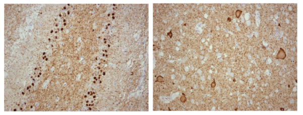 One brain section was stained with ubiquitin (standard stain for abnormal intracellular protein inclusions for all kinds of diseases) and they found that the pathology was quite unique and included: