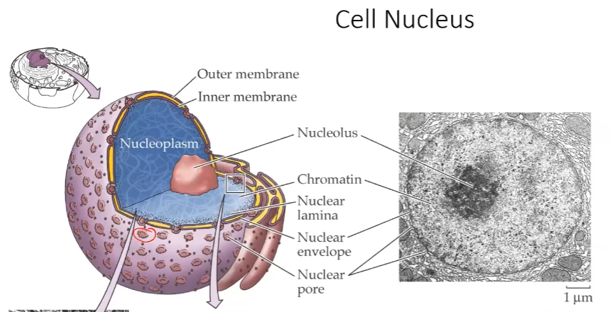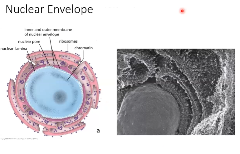 -Nuclear envelope -Nuclear lamina -Nuclear pores -Nucleolus -Nucleoplasm
