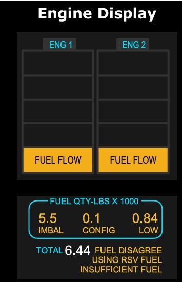 LOW: Respective Main Tank fuel quantity is less than 2000 pounds for greater than 30 seconds.