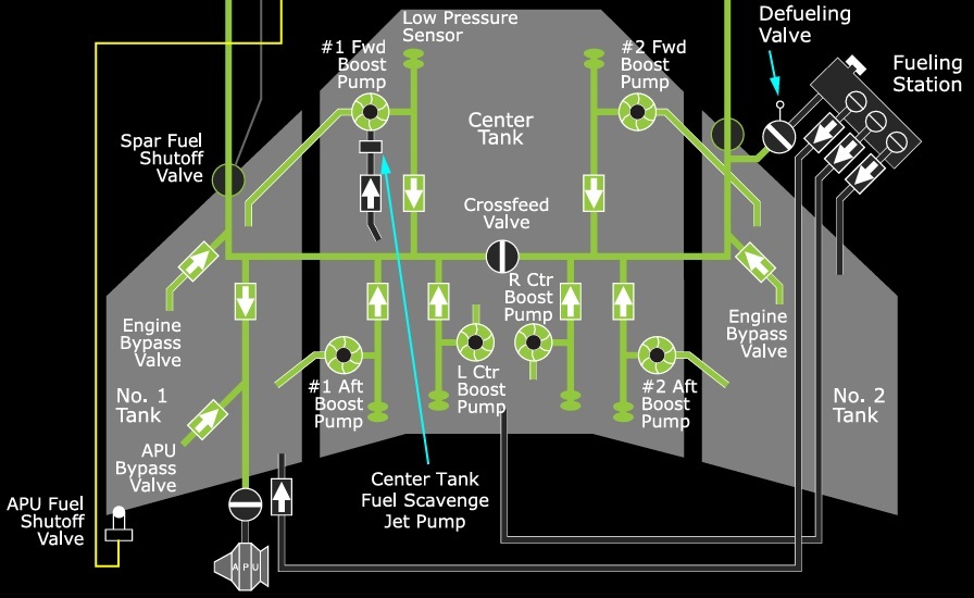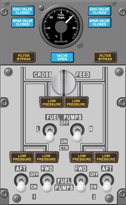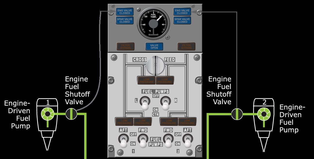When main tank fuel pump pressure is low, each engine can draw fuel from its corresponding Main Tank through a suction feed line that bypasses the pumps.