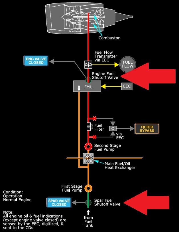 Fuel flow to the engine is controlled by the fuel SOV located in each engine and wing spar