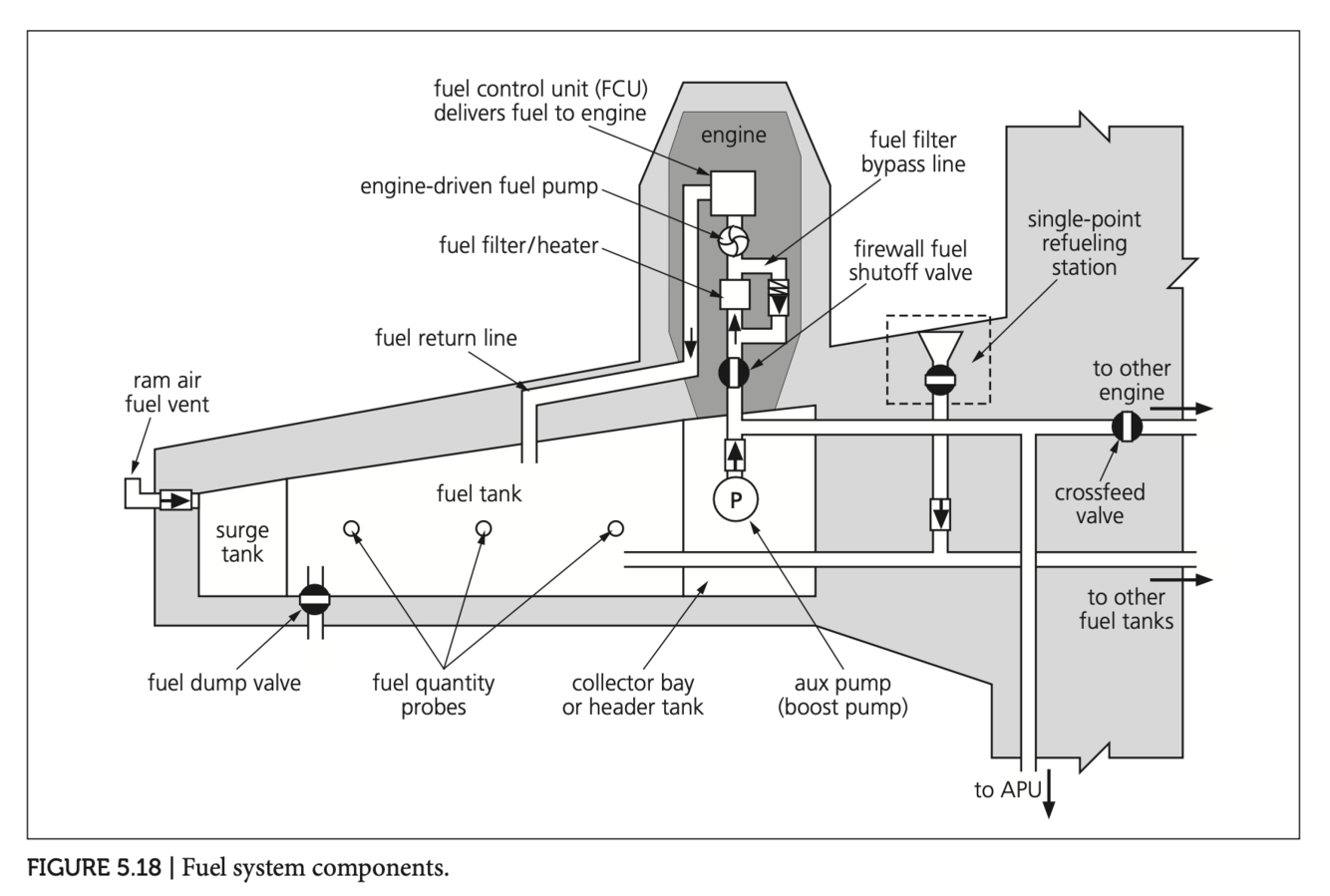 The high-pressure fuel pump is driven by the engine and supplies fuel to each engine at pressures of about 900–1,000 psi.
