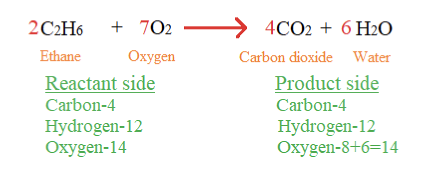 Balanced equation for complete combustion of ethane: