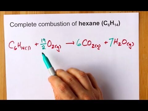 Balanced equation for complete combustion of hexane: