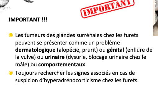 => plus on stérilise un furet tard, plus il développe une tumeur surrénalienne tard