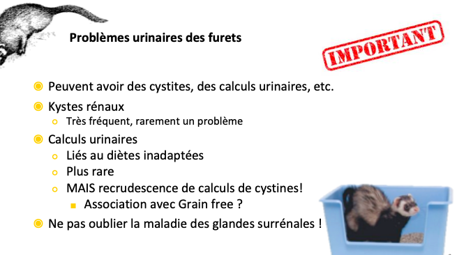 Décrire les problèmes urinaires des furets.