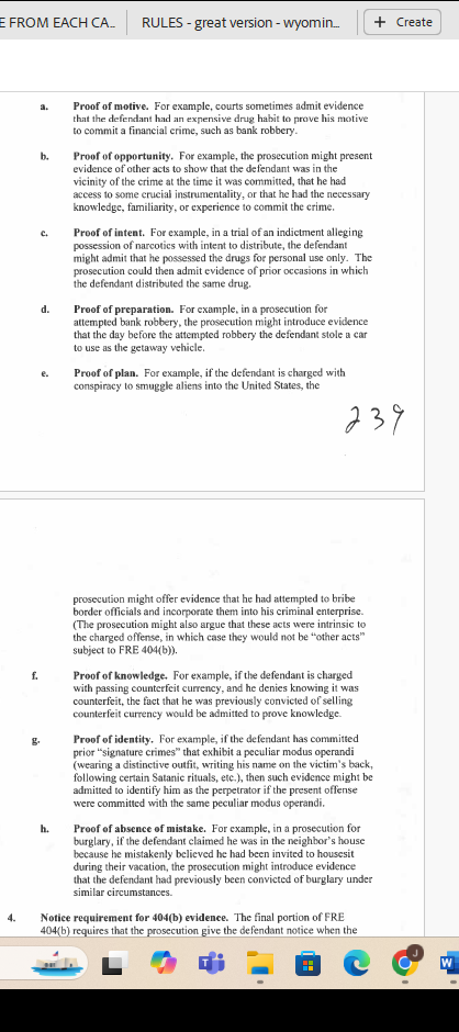 FRE 404(b) - Use of crimes, wrongs, or other acts for one of the limited purposes listed in this rule.