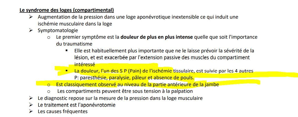 quel est le premier symptome ou entk le plus important dans le syndrome compartimental