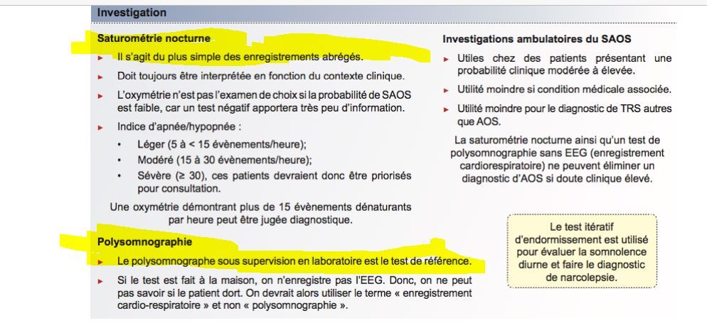 Compare deux test paraclinique pour syndrome apnée du sommeil