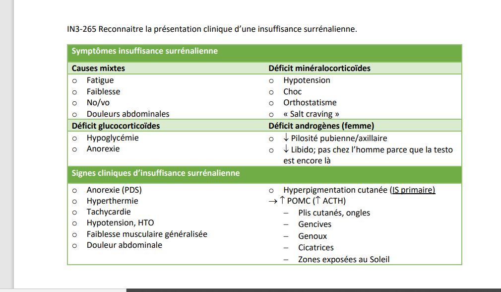 énumère moi des sx/signes de la présentation clinique classique d’ins surr