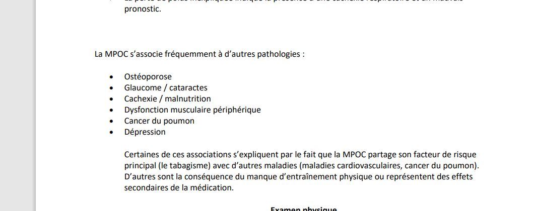 nomme moi 4 pathos que la mpoc s’associe souvent avec