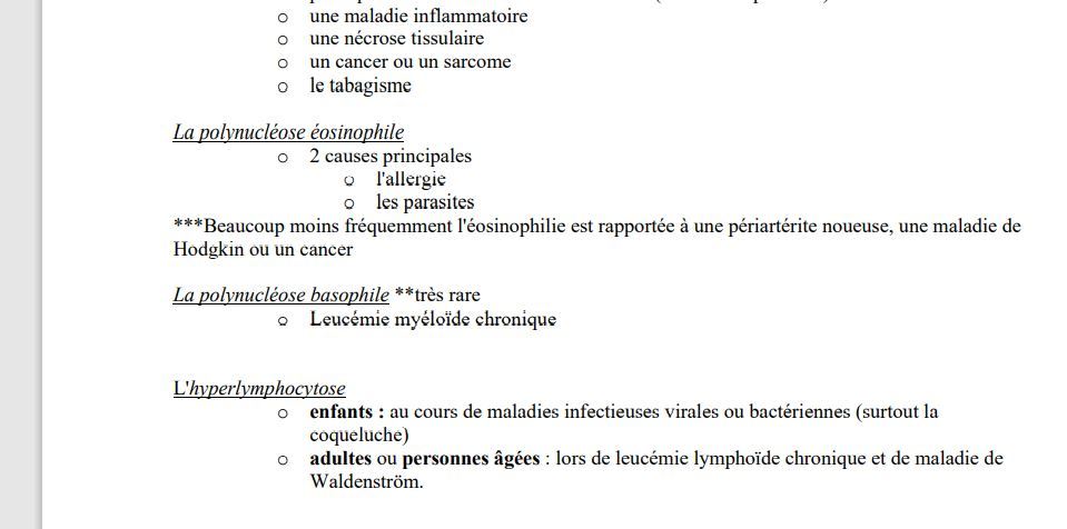 polynucléose eosinophile donne2 trucs ququel tu dois penser et polynucléose basophile 1 truc