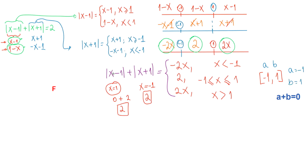 Se [𝑎, 𝑏] é o conjunto solução da equação |𝑥 − 1| + |𝑥 + 1| = 2, então 𝑎 + 𝑏 > 0.