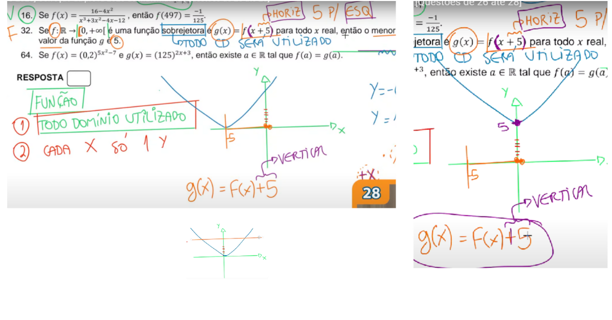 Se 𝑓: ℝ → [0, +∞[ é uma função sobrejetora e 𝑔(𝑥) = 𝑓(𝑥 + 5) para todo 𝑥 real, então o menor valor da função 𝑔 é 5.