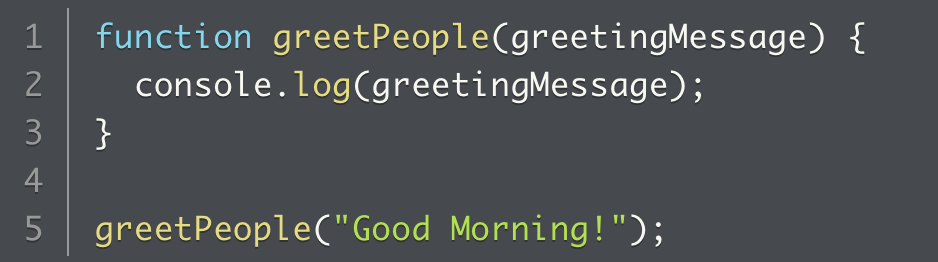 How can we ask greetPeople to output a different greeting message if we’ve hard-coded our greeting message on line 2?