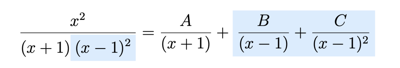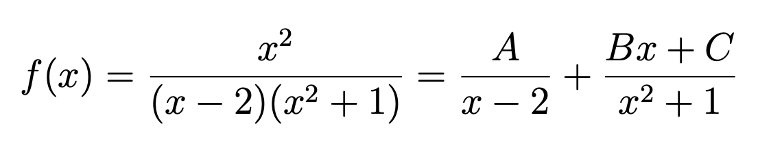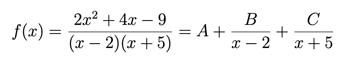 Polynomial of degree (degree of numerator - degree of denominator) PLUS constants over linear or linear over quadratic