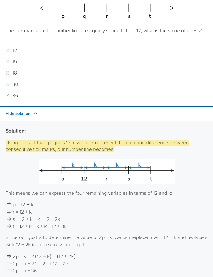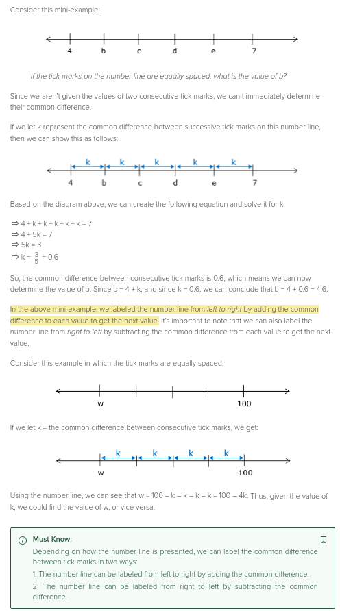 if x and y are consecutive values on a number line with equally spaced tick marks and x<y, then the common difference between tick marks is y-x