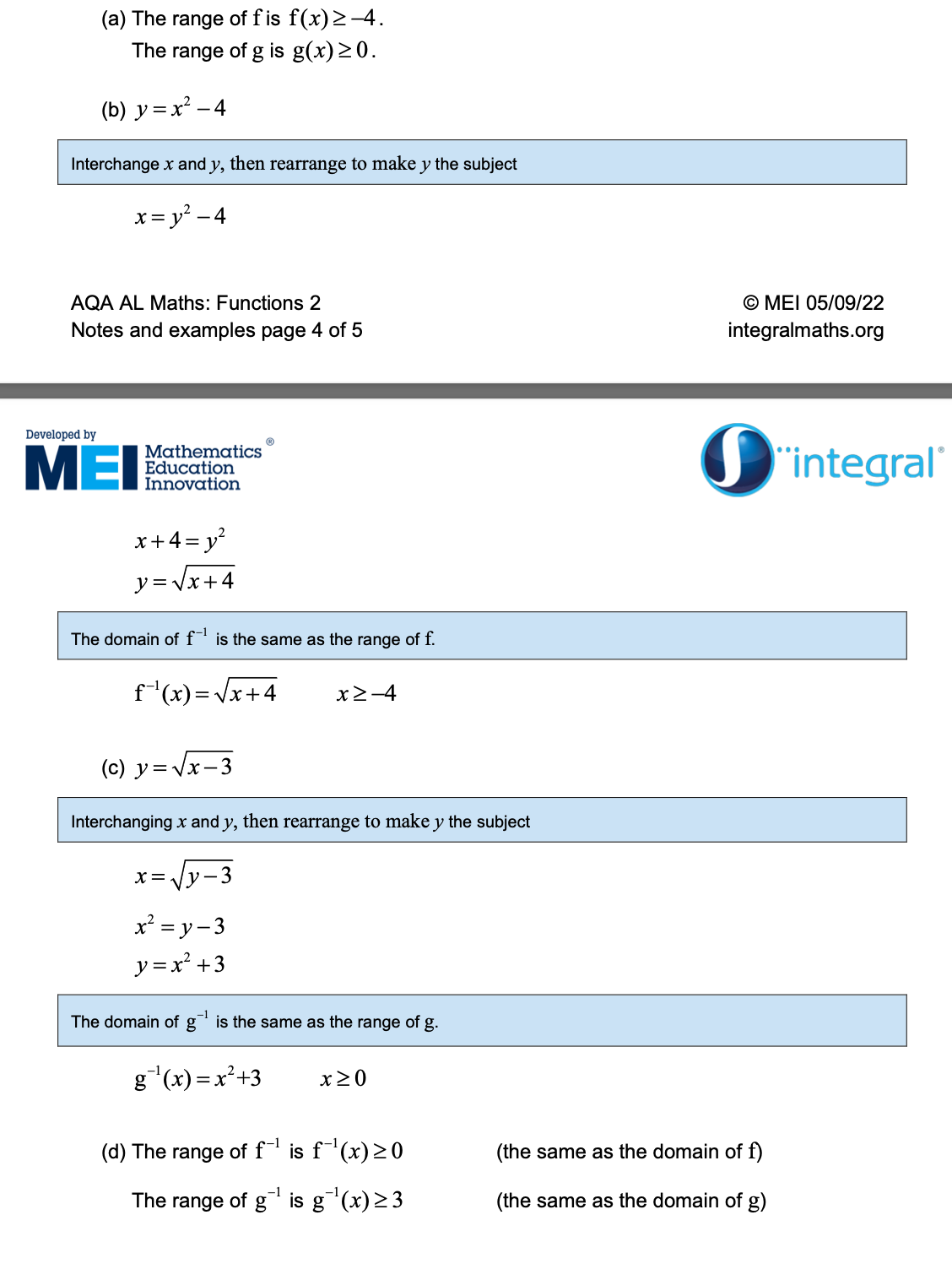 A LEVEL Maths PURE > Functions: Composite and inverse functions > Flashcards