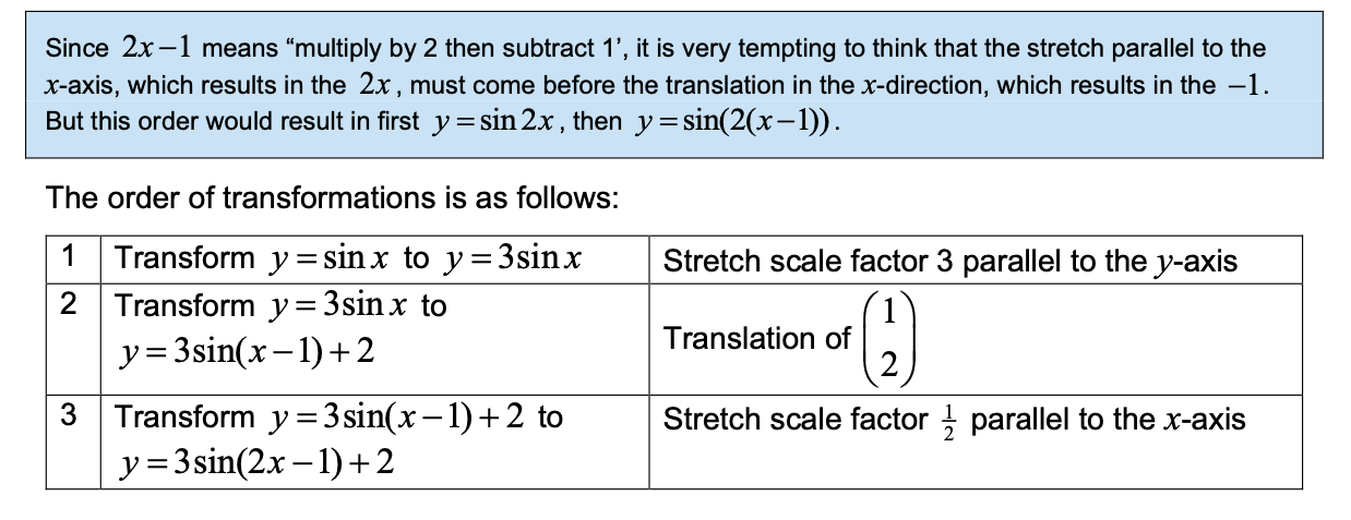 y = f (ax) is the equation of the graph obtained when the curve y = f (x) is stretched with scale factor 1/a parallel to the x-axis