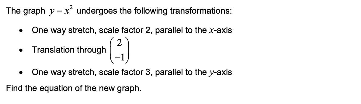 y = af (x) is the equation of the graph obtained when the curve y = f (x) is stretched with scale factor a parallel to the y-axis