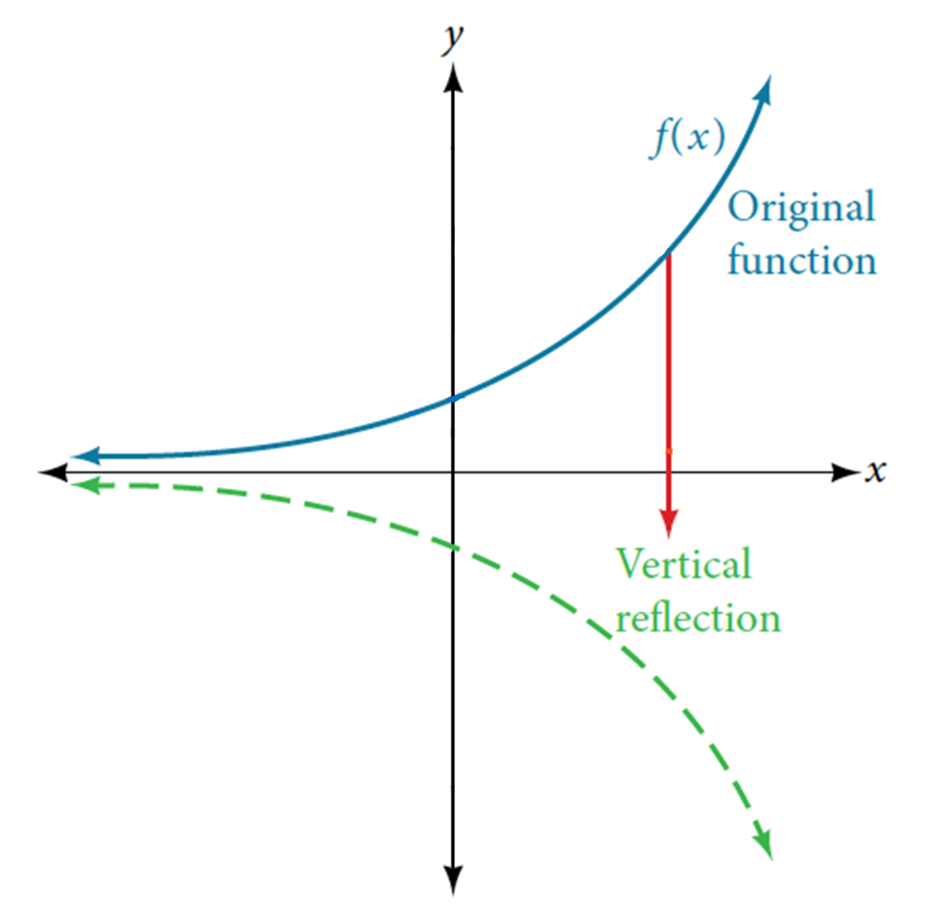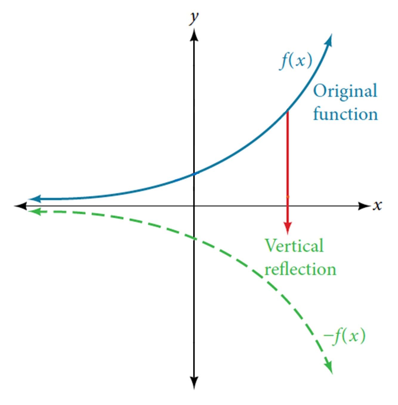 How do you have to change the function “f(x)” if you want to reflect it in the x-axis (aka “vertically”)?