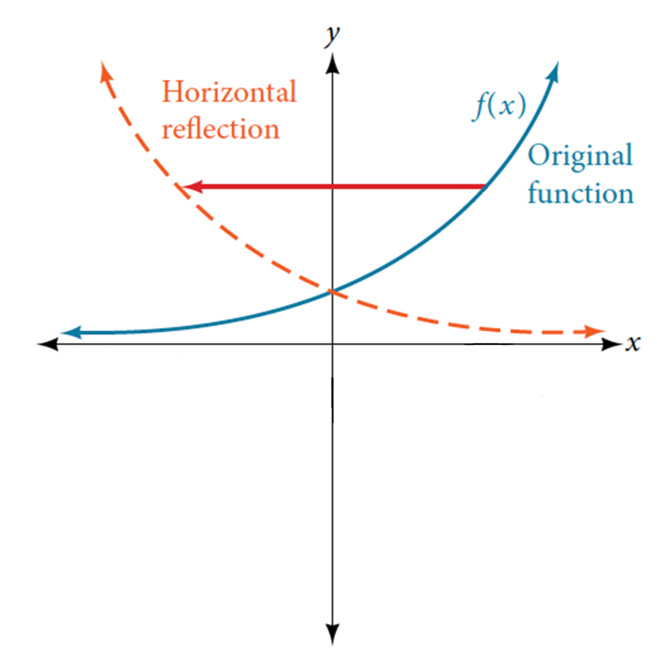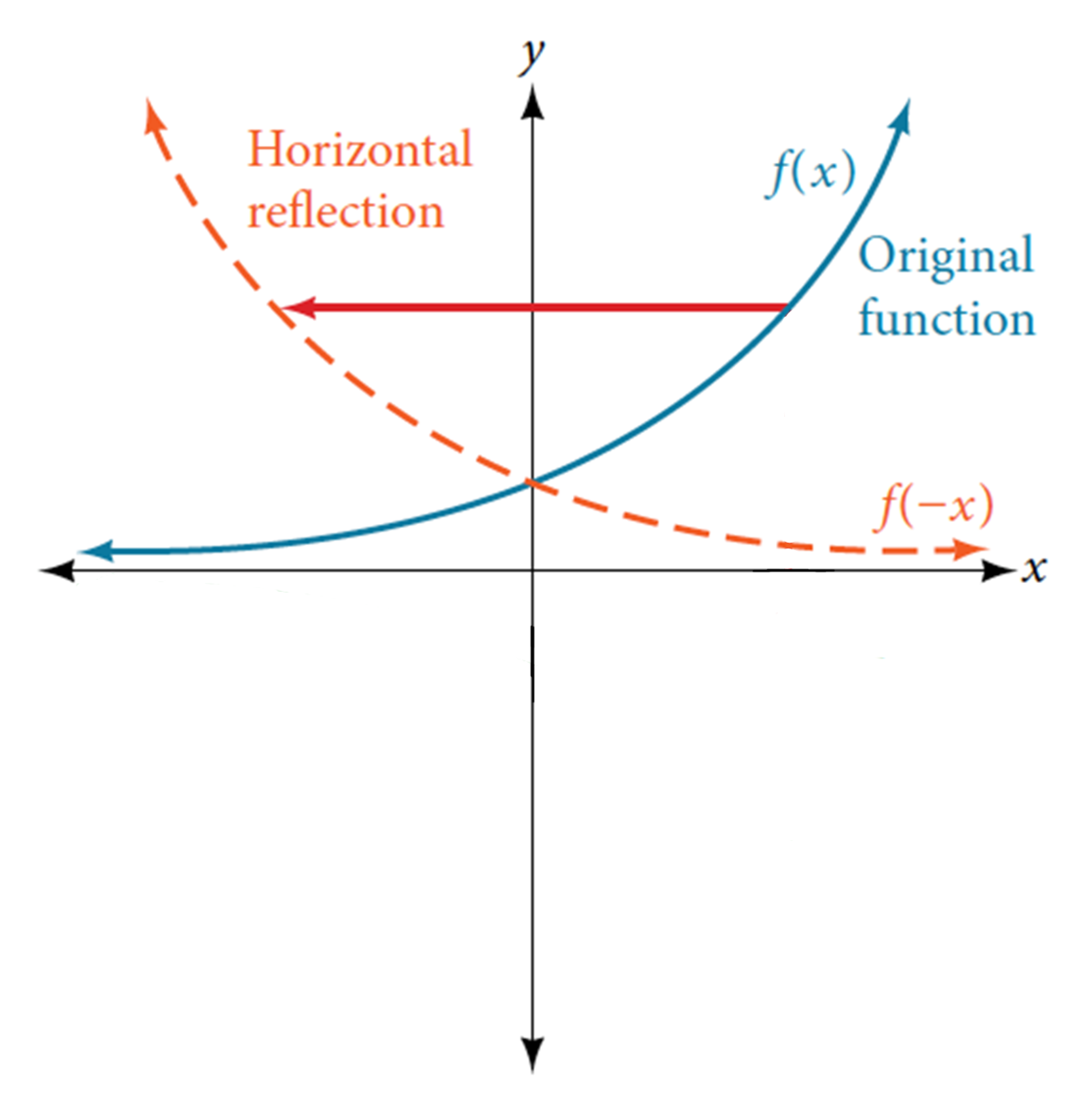 How do you have to change the function “f(x)” if you want to reflect it in the y-axis (aka “horizontally”)?