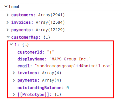 customerMap[custId].outstandingBalance += inv.Balance || 0; });payments.forEach(pmt => {