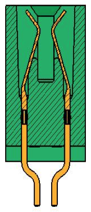Two (2) contact points per contact for higher normal force/board stabilization for a more “rugged” or “ruggedized” connector solution to operate in harsh environments, such as strong vibrations.