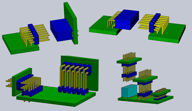 Provides a solderless mechanical/electrical interface between two PCBs on the same plane.