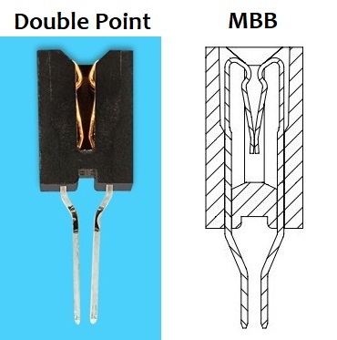 Two (2) contact points per contact with the lower contact points shorted by design such that the mating PCB makes contact with the upper contact point before the lower contact short is broken. Used for “hot swap” applications where the mating PCB is swapped without shutting down.