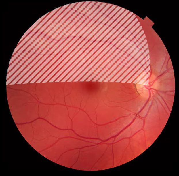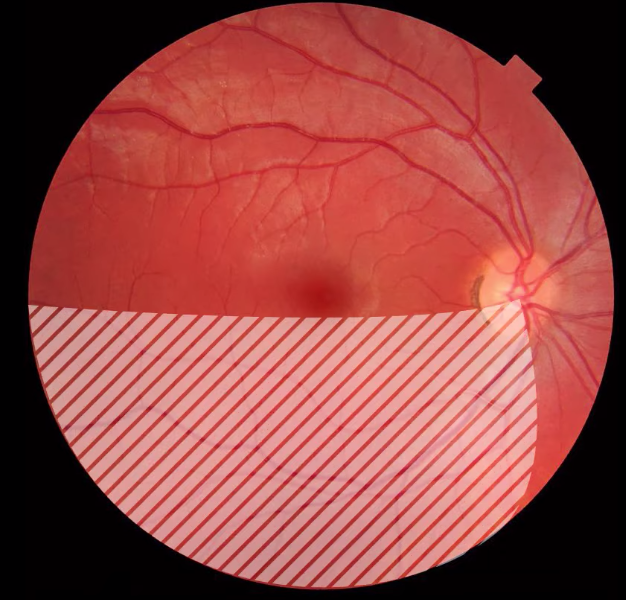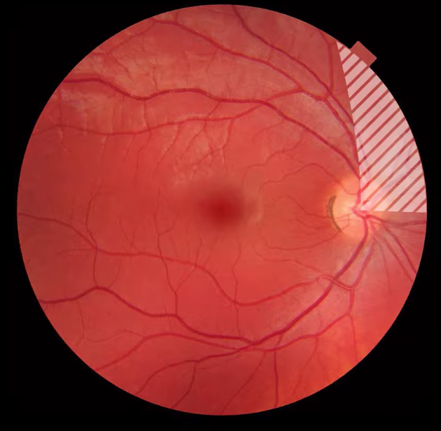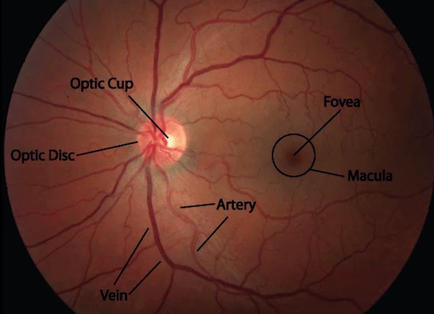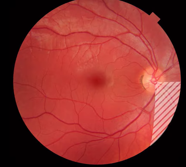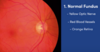 what does fundoscopy look like and what are the features you see on fundoscopy