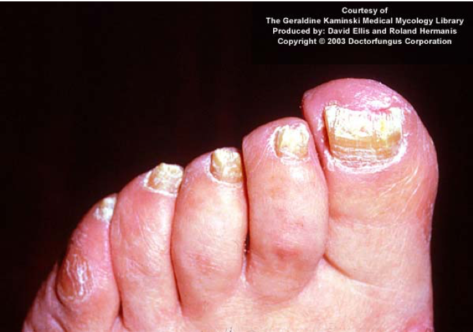 b) tinea unguium –> fungal nail disease