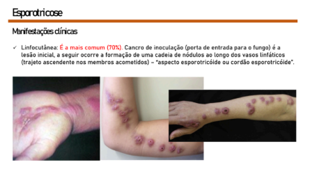 Quais os sintomas associados a forma linfocutânea da esporotricose ? (2)