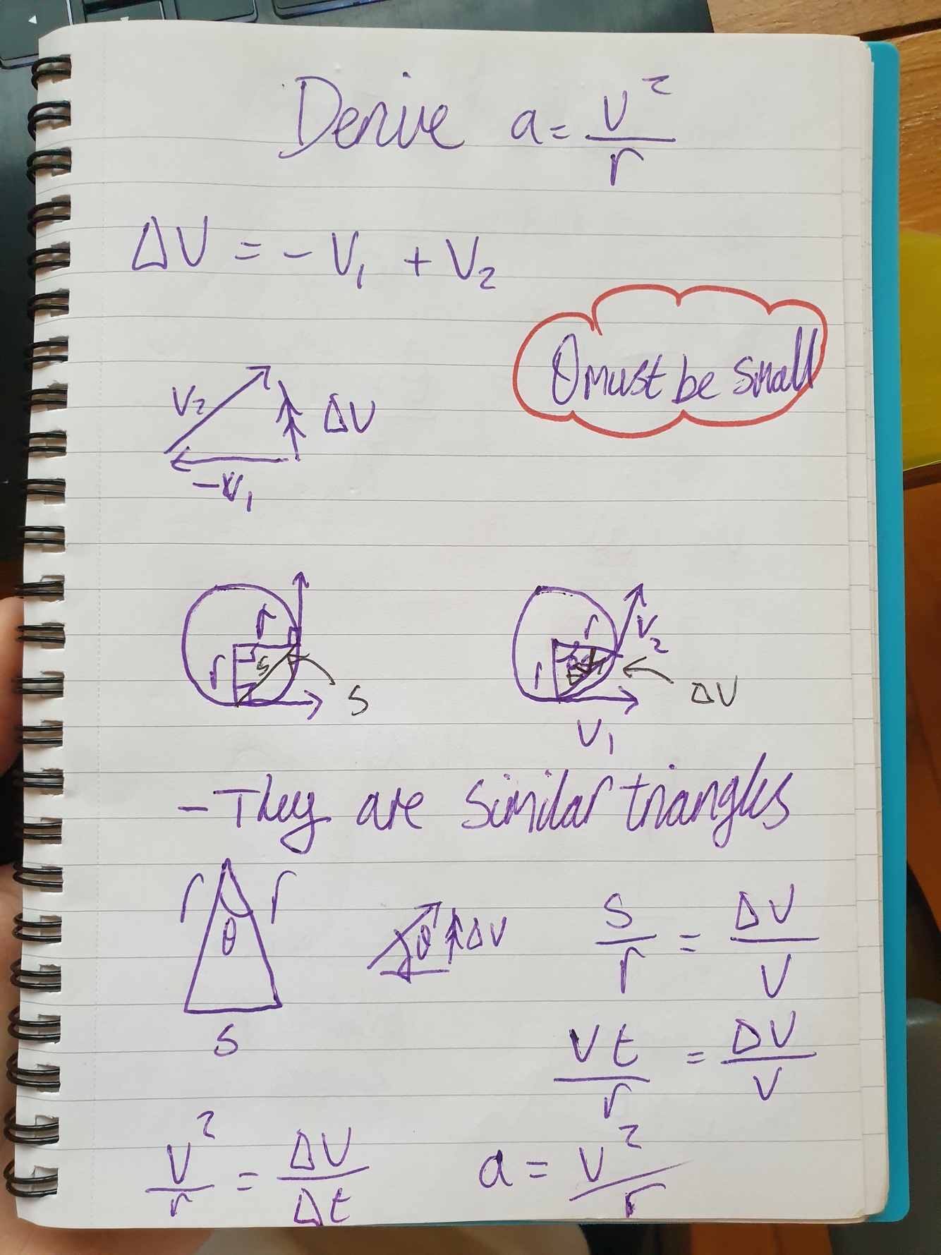 How do you derive a = v2 / r