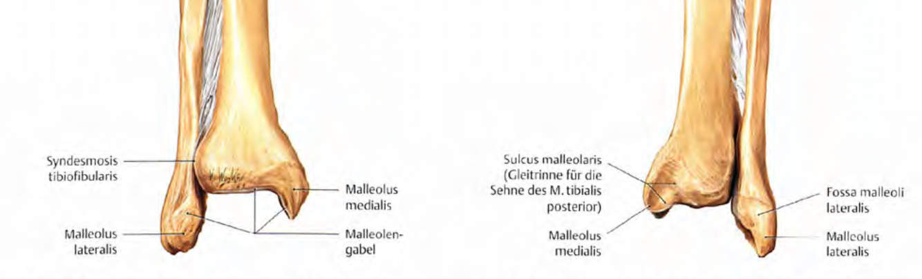 Distale Anteile des Unterschenkels von vorne und hinten
