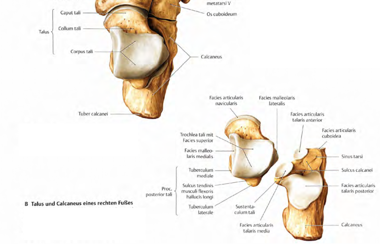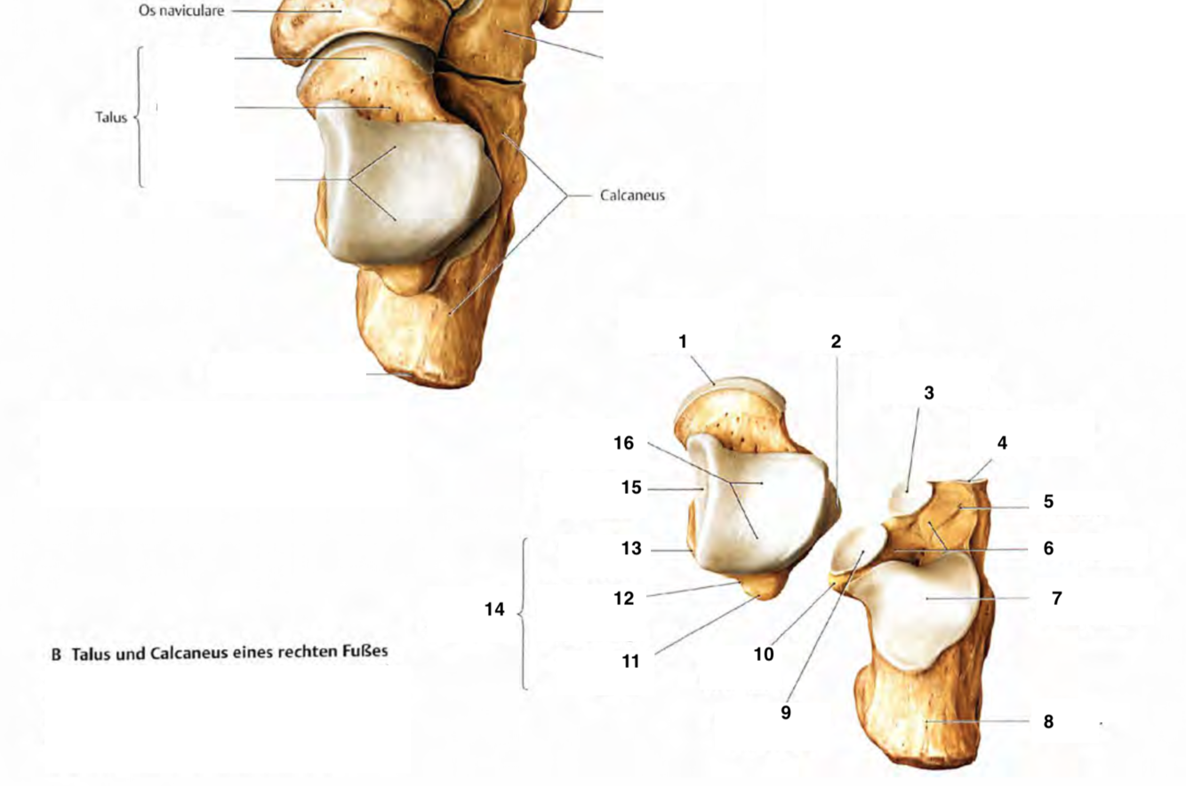 Welche Gelenkflächen gibt es am Calcaneus für die Verbindung zum Talus? (2)