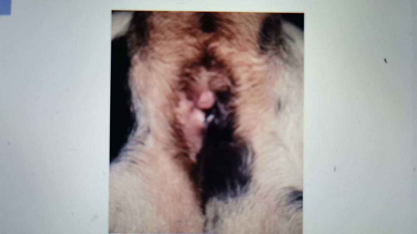 Dalmatiner mit perianalem Juckreiz, haeufig durch Speichelverfaerbungen der umgebenden gekennzeichnet