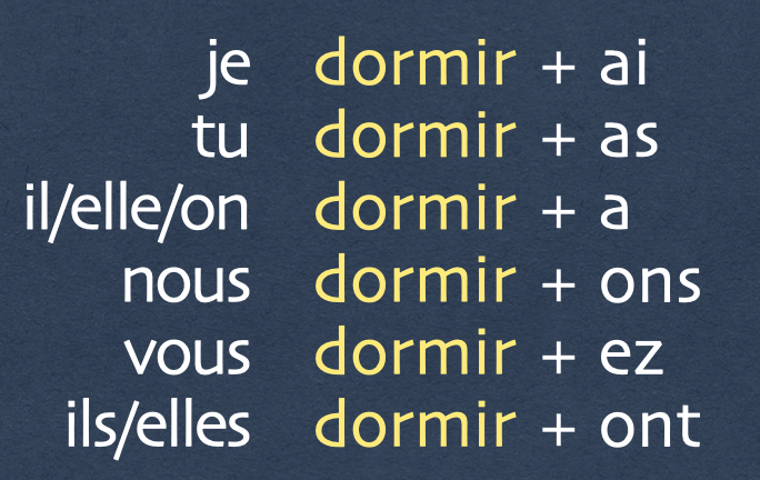ex: je dormirai = ik zal slapen