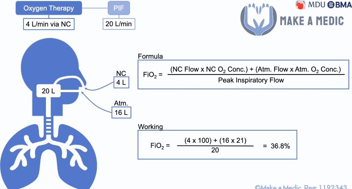 NOTE: If PIF increases (breathing harder) –> FiO2 decreases so more device O2 is required