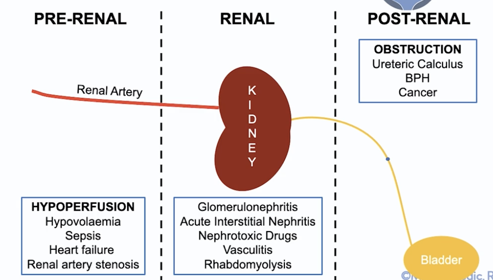 Def: abrupt loss of kidney function resulting in dysregulation of fluid balance + electrolytes & retention of nitrogenous waste products