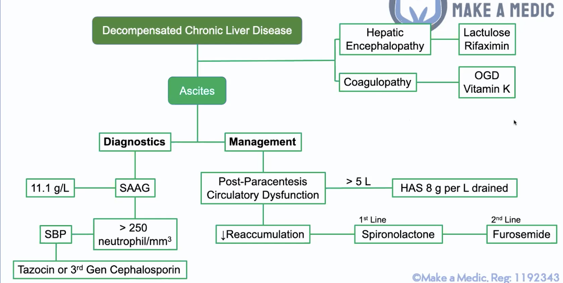 Decompensated CLD –> Ascites, jaundice & encephalopathy