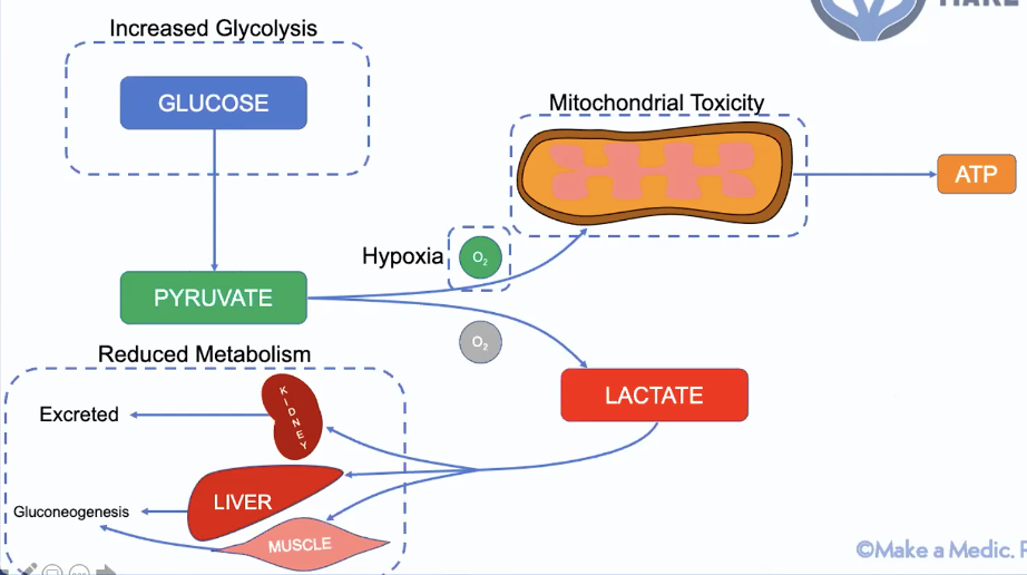 How does lactic acidosis appear on VBG? Lactate physiology/pathology?