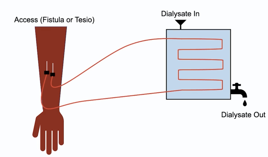 Haemodialysis - access? How does it work? How often? Indications? Complications?