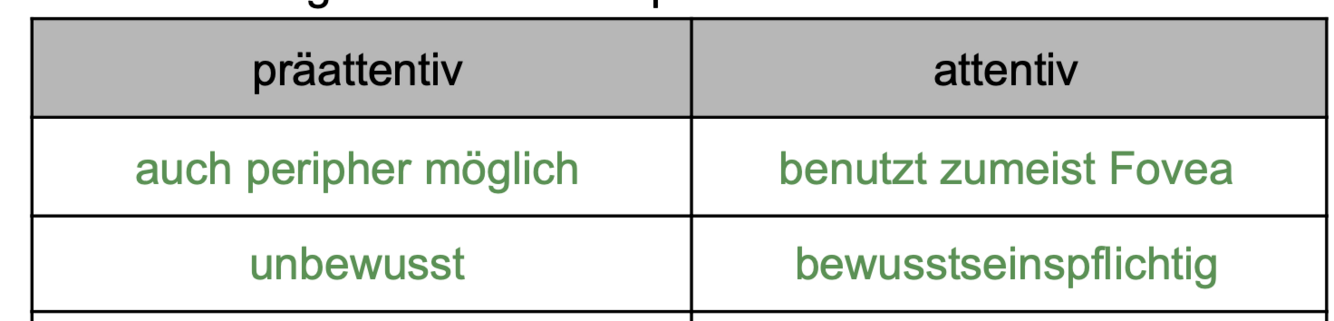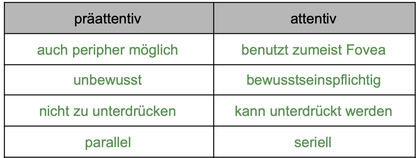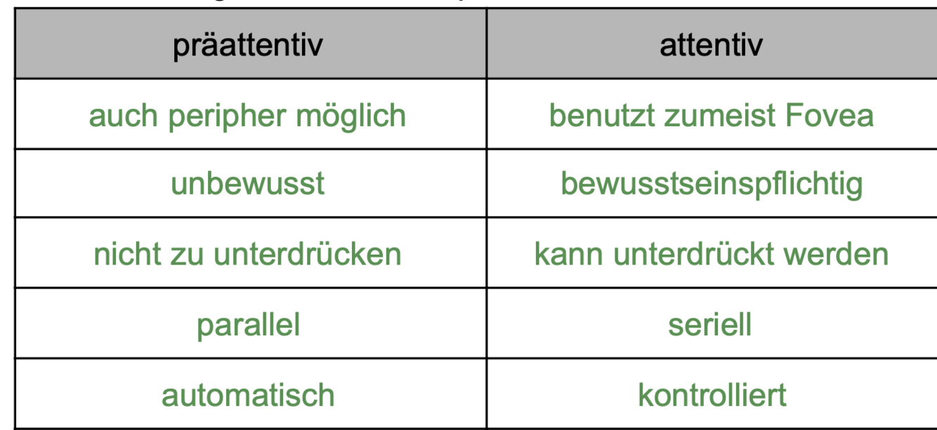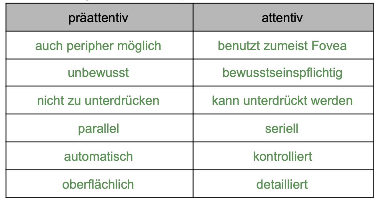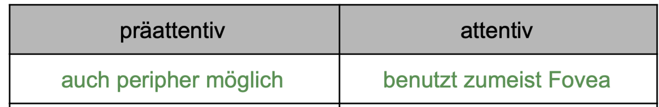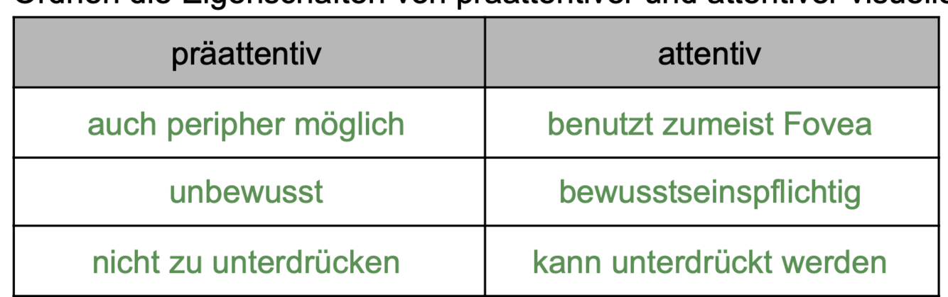 Ordne zu: Präattentiver oder attentiver visueller Wahrnehmung