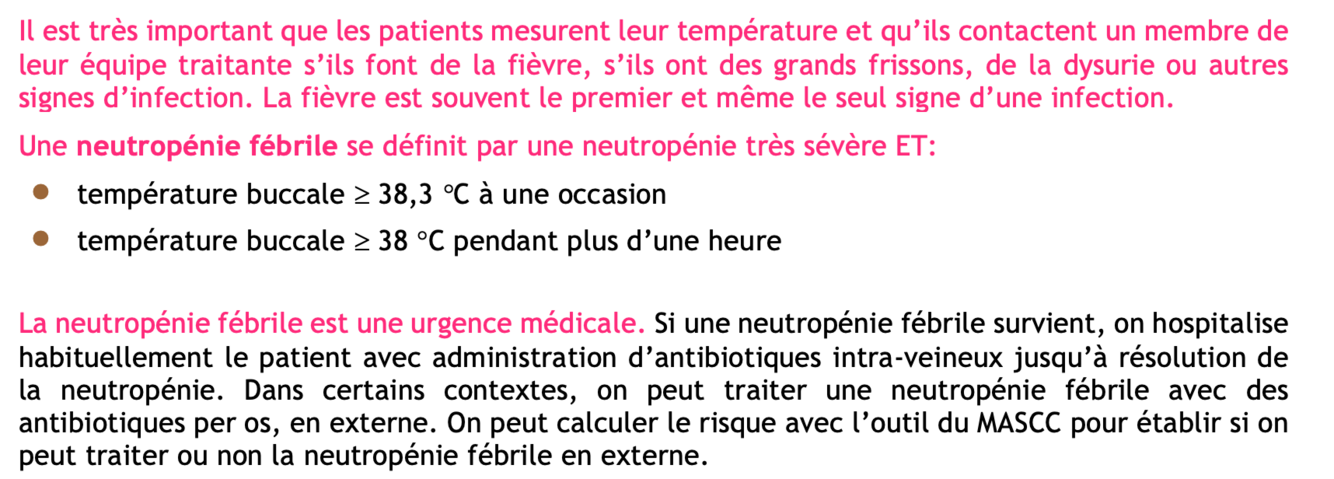 Neutropénie fébrile: définition et gestion