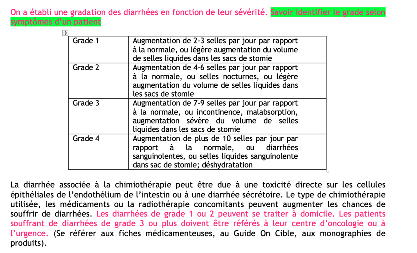 Grades diarrhée